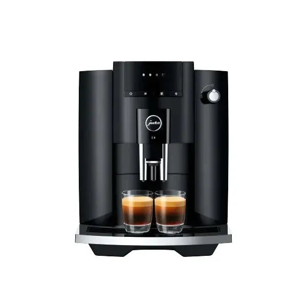 Die E4 präsentiert sich im charakteristischen Design der JURA-Vollautomaten. Es ist geprägt von straffen Flächen und klaren Linien. In höchster Präzision verarbeitet, unterstreicht die reduzierte Formensprache die Premium-Qualität dieses Vollautomaten. Purismus findet auch in der Farbwahl Ausdruck. Während der gesamte Körper in zurückhaltendem Piano Black gehalten ist, setzen verchromte Highlights Akzente und inszenieren das perfekte Kaffeeresultat.