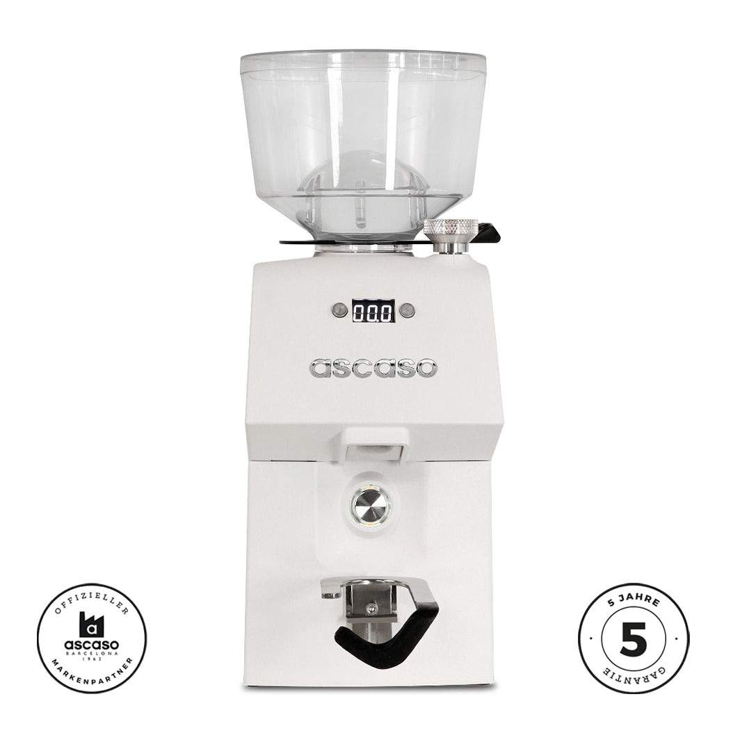 Die Ascaso H64 kombiniert professionelle Leistung mit Benutzerfreundlichkeit und eleganter Form. Mit ihren Single-Dosing-Funktionen ab Werk, ihrer Leisefunktion und dem leistungsstarken Mahlwerk ist sie eine exzellente Wahl für alle, die Espresso auf Barista-Niveau Zuhause genießen möchten.